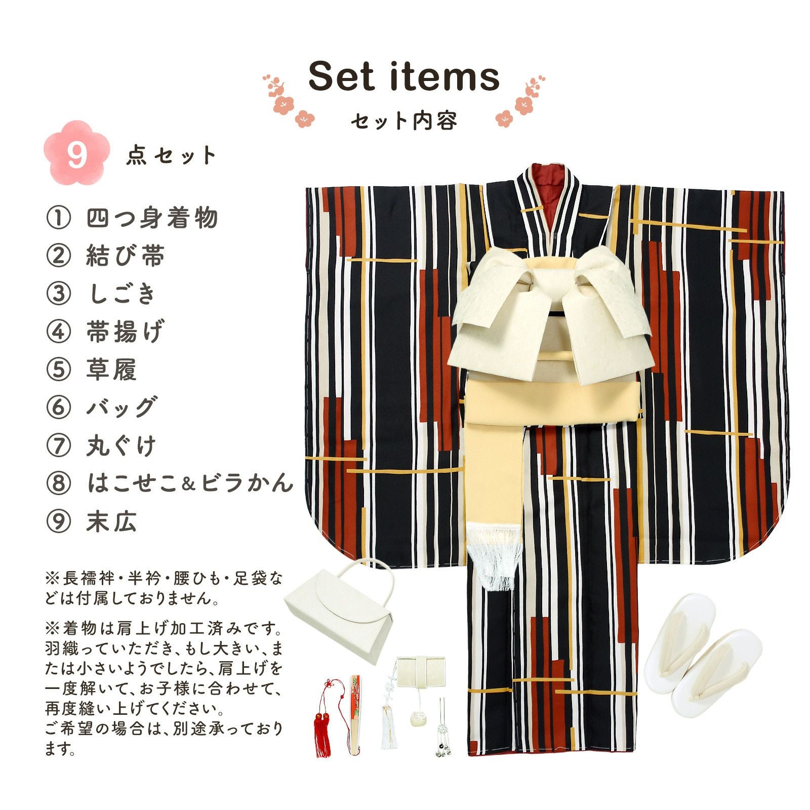 他の画像を見る 送料無料 京都きもの町 こだわりの一着を、七歳の晴れ舞台に。 七五三 7歳 四つ身着物セット「ストライプブーケ プラム」女の子 7才 女児用 子供着物 七才のお祝い着向け KIMONOMACHI オリジナル【メール便不可】 きもの町価格 ¥ 97,020 税込 詳細を見る お気に入りに登録する