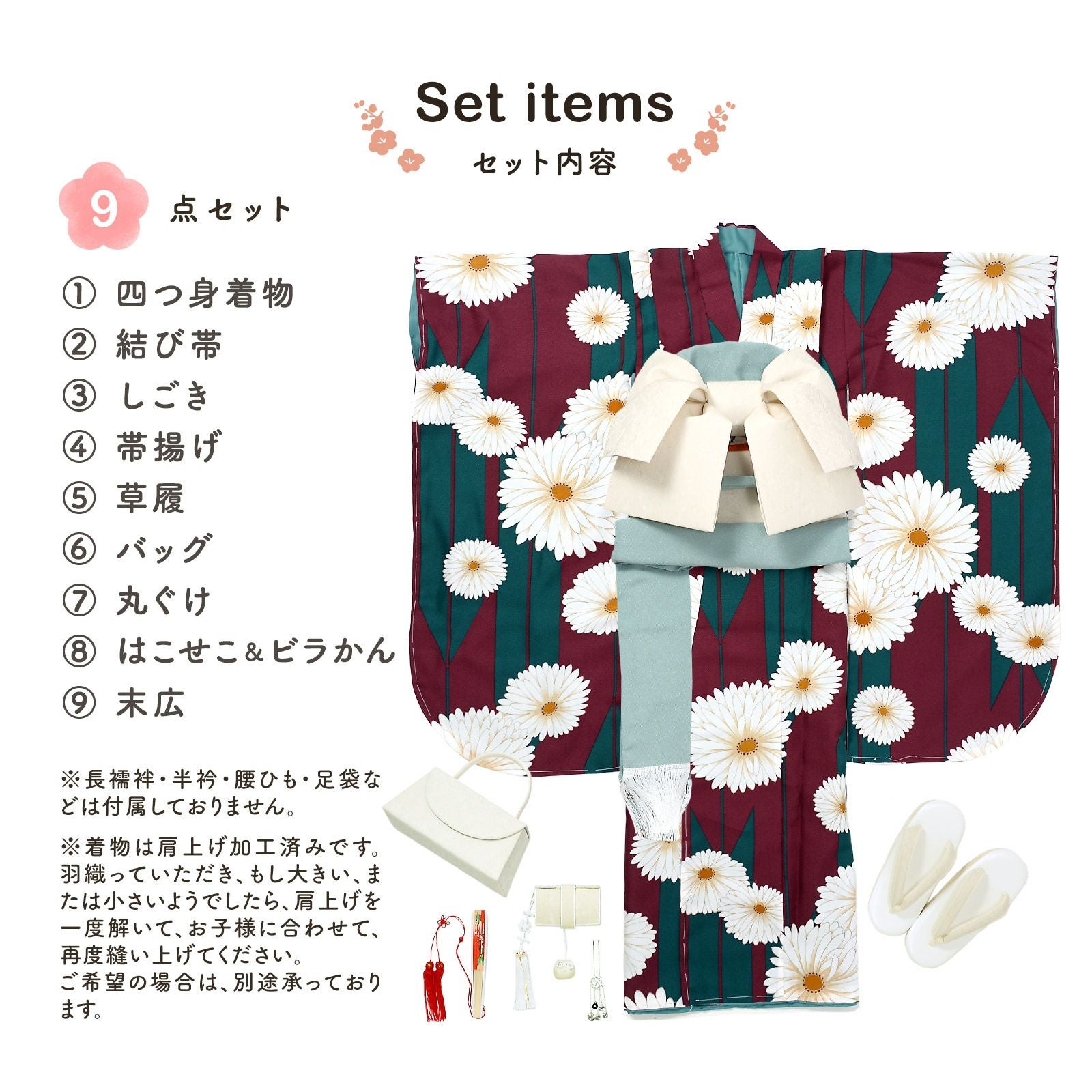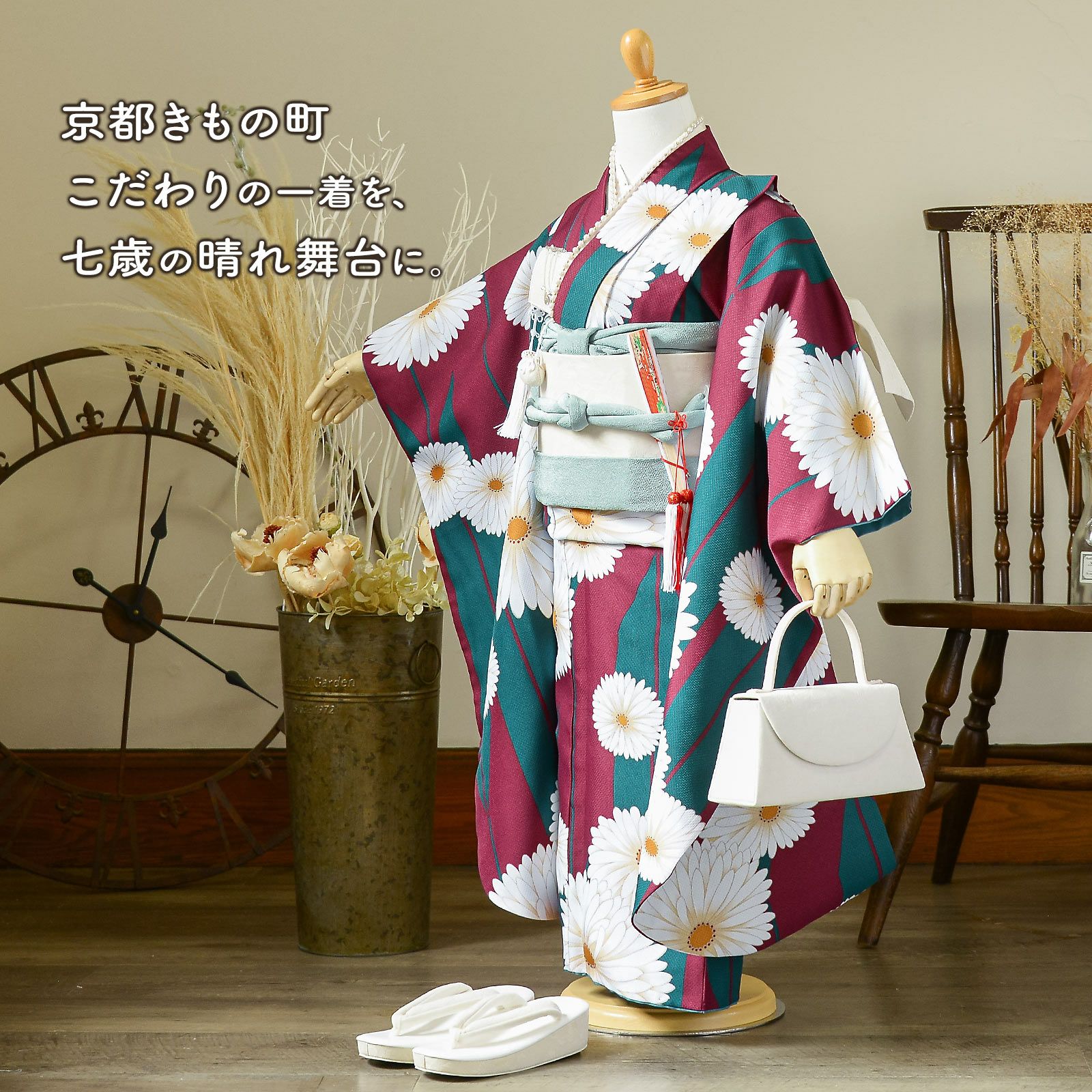 他の画像を見る 送料無料 七五三 七歳の女の子に 華やかな四つ身着物 ひな祭り、桃の節句 お正月にも お子様着物に 七五三 7歳 四つ身着物フルセット ブランド 華徒然「深緋色 花束に車、鼓」女の子 7才 女児用 子供着物 七才のお祝い着向け【メール便不可】 きもの町価格 ¥ 266,200 税込 カートに入れる お気に入りに登録する