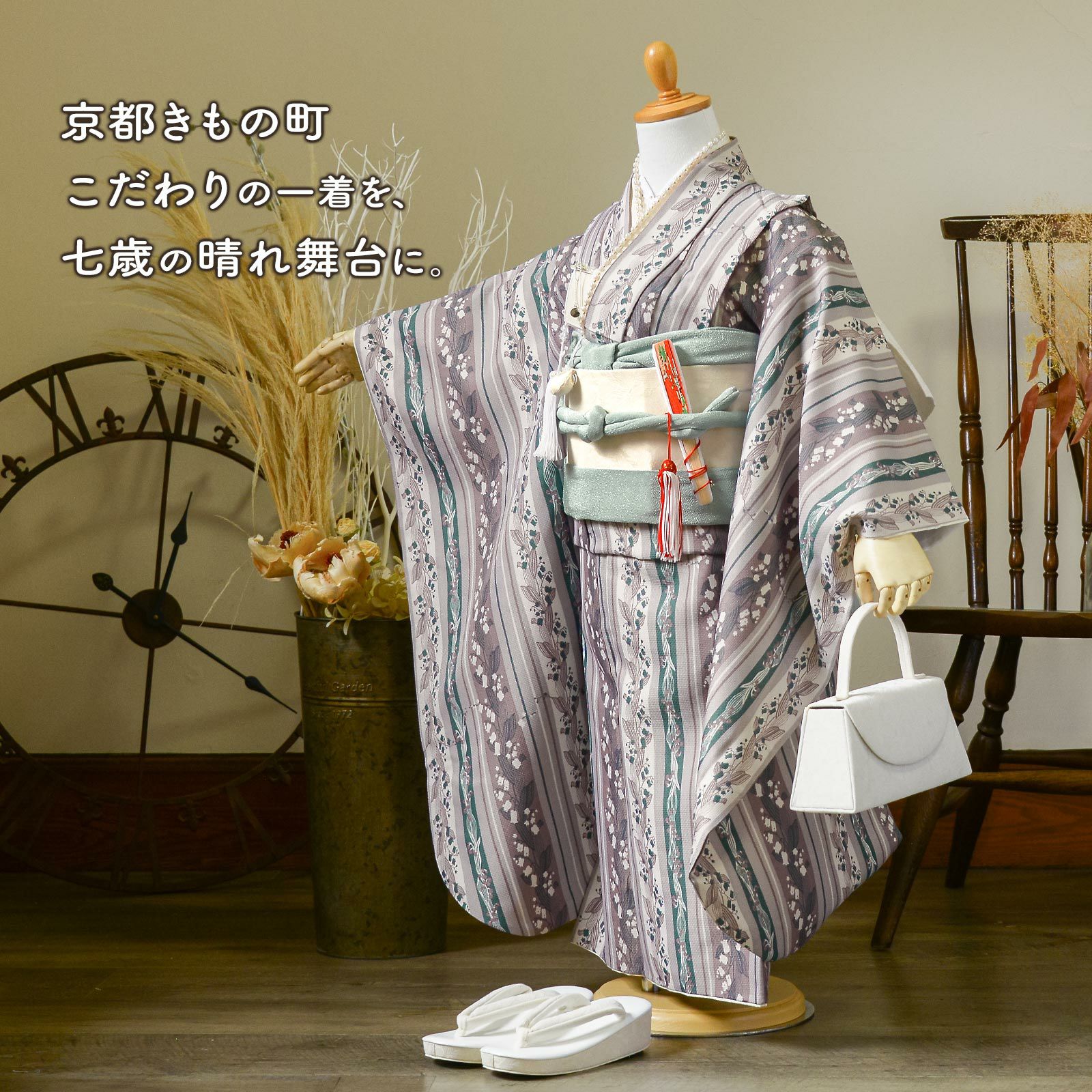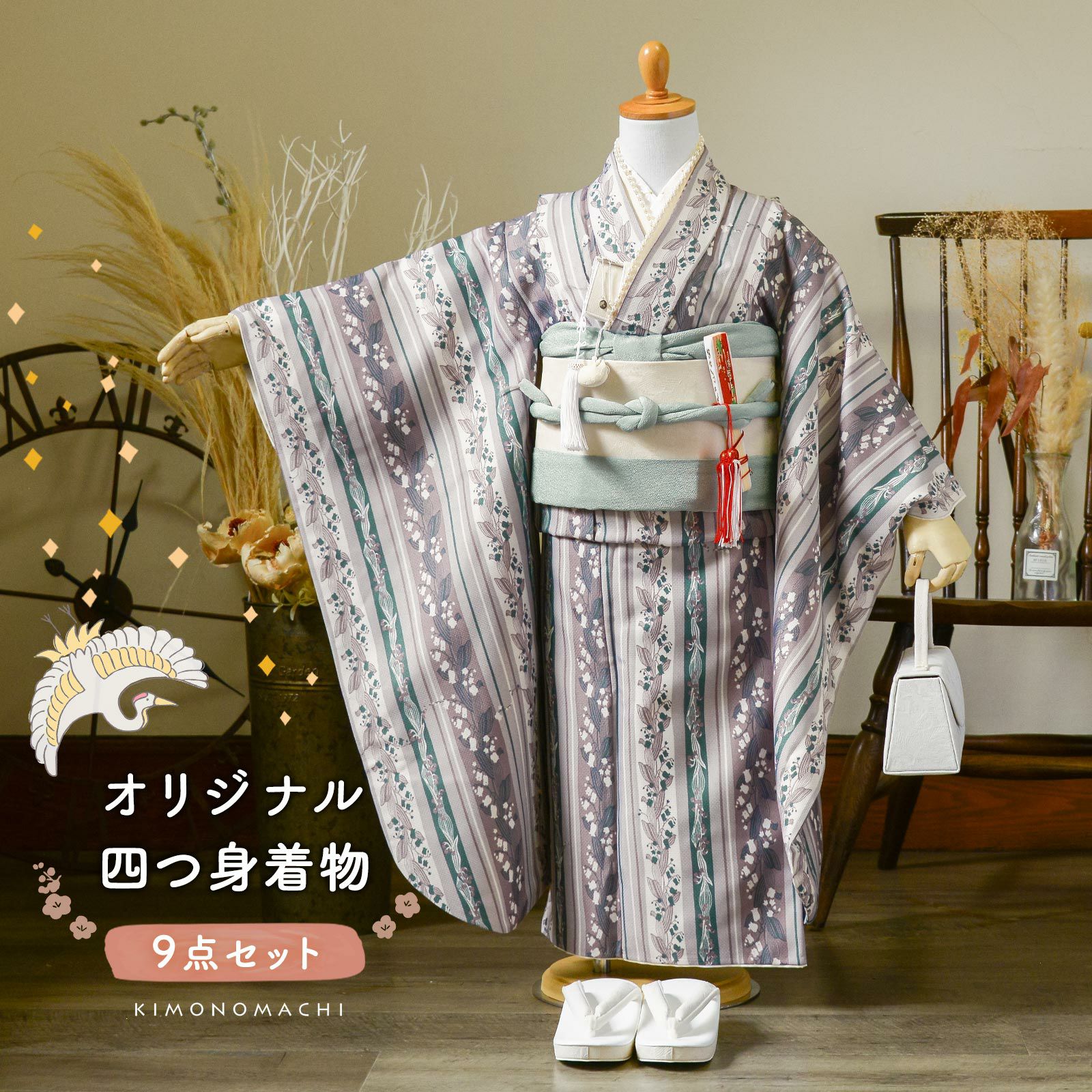 他の画像を見る 送料無料 京都きもの町 こだわりの一着を、七歳の晴れ舞台に。 七五三 7歳 四つ身着物セット「縞すずらん パープル×グリーン」女の子 7才 女児用 子供着物 七才のお祝い着向け KIMONOMACHI オリジナル【メール便不可】 きもの町価格 ¥ 97,020 税込 詳細を見る お気に入りに登録する