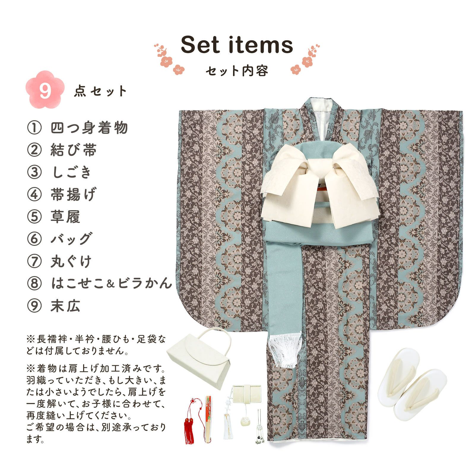 他の画像を見る 送料無料 京都きもの町 こだわりの一着を、七歳の晴れ舞台に。 七五三 7歳 四つ身着物セット「ストライプブーケ グリーン」女の子 7才 女児用 子供着物 七才のお祝い着向け KIMONOMACHI オリジナル【メール便不可】 きもの町価格 ¥ 97,020 税込 詳細を見る お気に入りに登録する