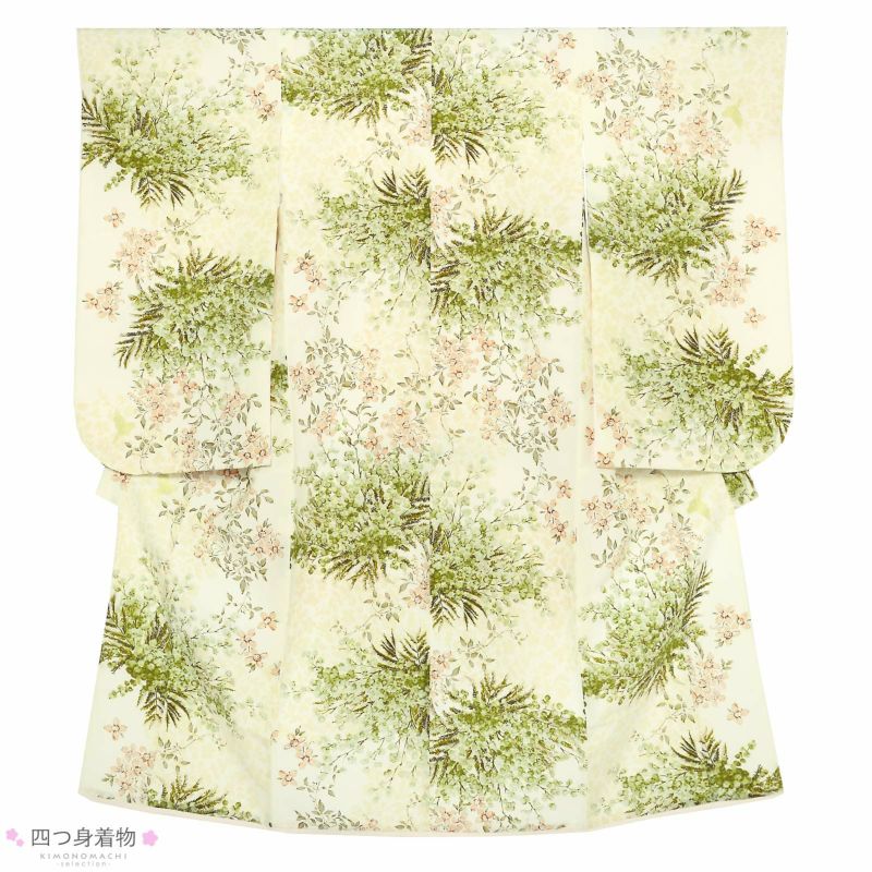 七五三 7歳 四つ身着物フルセット ブランド SugarKei シュガーケイ「オフホワイト グリーンミモザ」女の子 7才 女児用 子供着物 七才のお祝い着向け