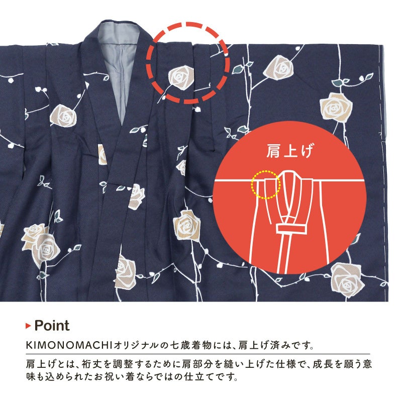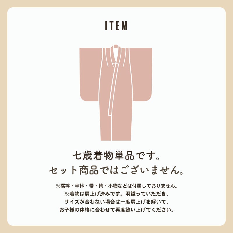 ※着物は肩上げ加工済みです。羽織っていただき、サイズが合わない場合は一度肩上げを解いて、お子様の体格に合わせて再度縫い上げてください。