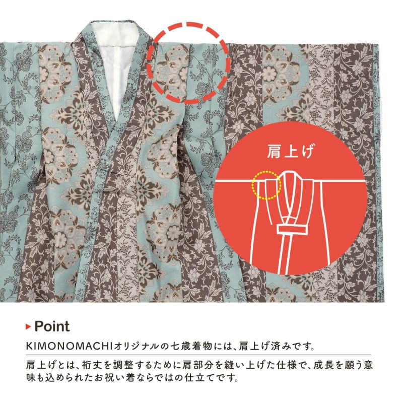 ※着物は肩上げ加工済みです。羽織っていただき、サイズが合わない場合は一度肩上げを解いて、お子様の体格に合わせて再度縫い上げてください。