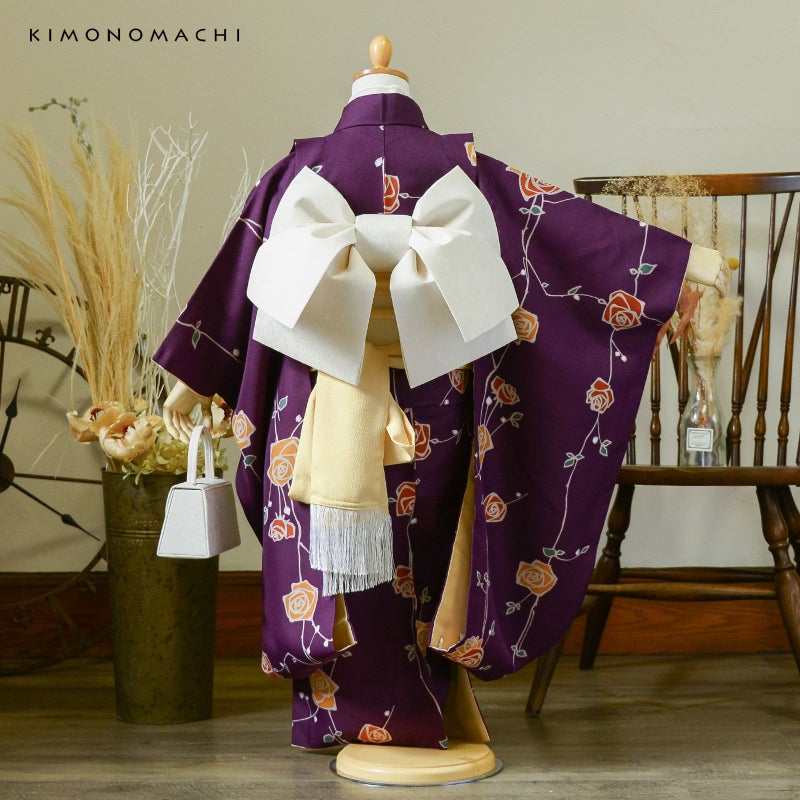 KIMONOMACHIオリジナルの7歳着物、作り帯、小物セット、帯揚げ、しごきの9点セットです。