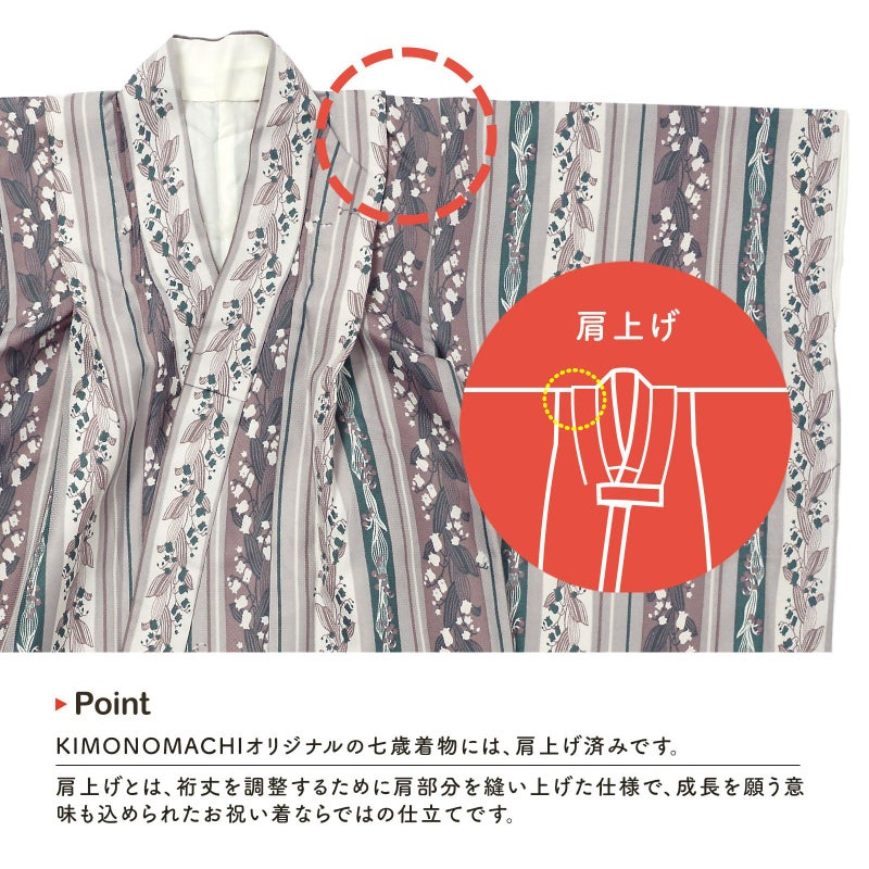 6. 七五三 7歳 四つ身着物セット「縞すずらん パープル×グリーン」女の子 7才 女児用 子供着物 七才のお祝い着向け KIMONOMACHI オリジナル【メール便不可】