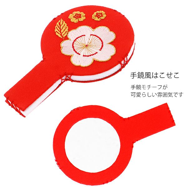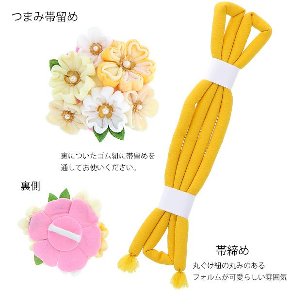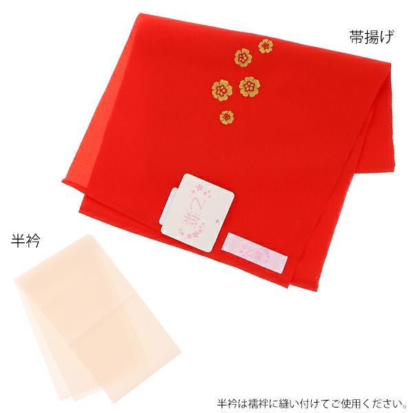 【Prices down2】七五三小物セット「赤色さくら刺繍、黄色丸ぐけ紐、つまみ細工帯留め」乙葉 7歳向け 子供着物 女の子の着物 箱迫、扇子、帯締め、帯揚げ、半衿、しごき HC-1【メール便不可】kk★10%OFF