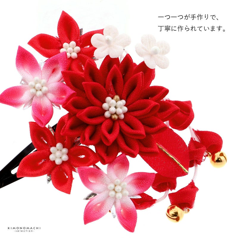 七五三 髪飾りセット 三歳・五歳・七歳の女の子に 桃の節句、お正月にも 七五三 髪飾り つまみ細工 クリップ 髪飾り 単品「赤、ぼかし 剣つまみの菊」日本製 ヘアアクセサリー お子様用髪飾り 七五三髪飾り【メール便不可】ss2503kkd10