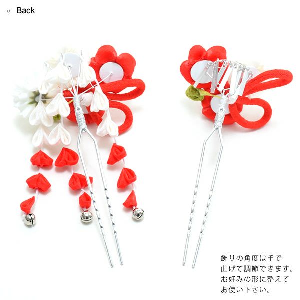 3. 【Prices down】七五三髪飾り2点セット「赤色のつまみのお花」つまみ細工 桃の節句、お正月にも 簪 子供 七歳の女の子に、三歳、五歳の女の子にも (No.1766) こども 女児 753【メール便不可】ss2509kkd30
