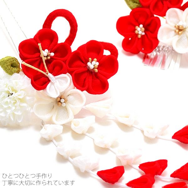 6. 【Prices down】七五三髪飾り2点セット「赤色のつまみのお花」つまみ細工 桃の節句、お正月にも 簪 子供 七歳の女の子に、三歳、五歳の女の子にも (No.1766) こども 女児 753【メール便不可】ss2509kkd30