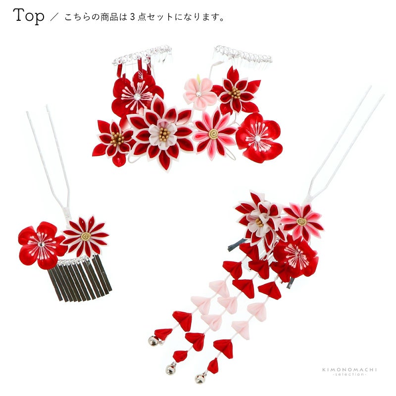 七五三で七才の女の子が日本髪に付ける髪飾り3点セットです。