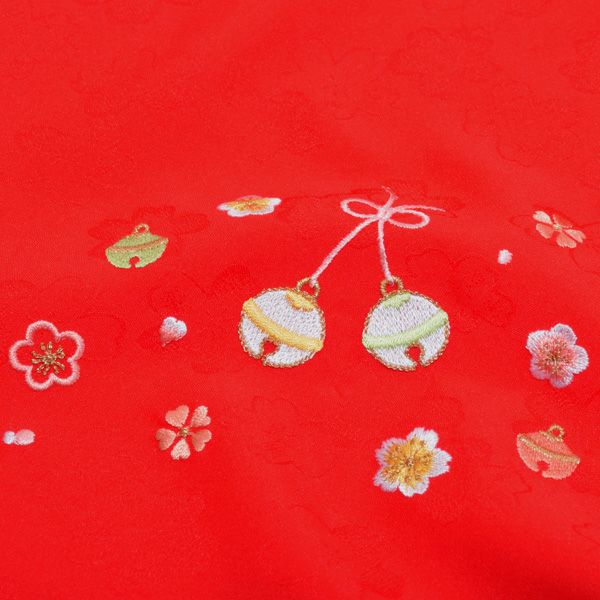 5. 【Prices down3】七五三帯揚げ「赤色 鈴と梅、桜」式部浪漫 ポリエステル帯揚げ こども着物 おびあげ 七歳、五歳、三歳 SR-AA【メール便不可】ss2509kkd25
