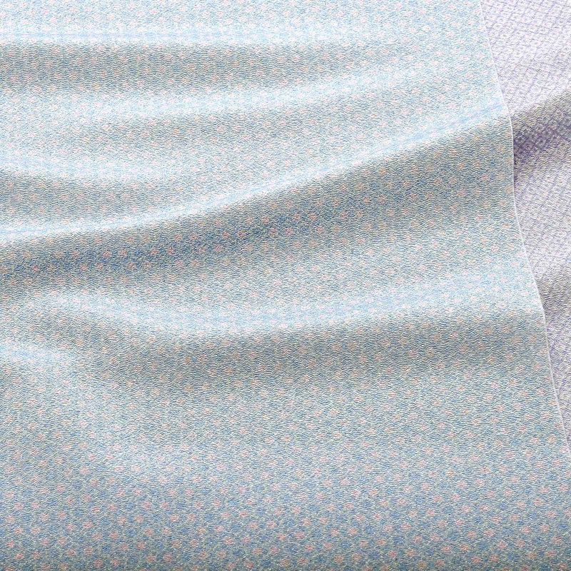 【カラー】片面は薄い青色にピンクの細かい水玉模様、もう片面はラベンダーのような薄紫色に疋田柄のシンプルな帯揚げです。リバーシブルですので、両面お使いいただけます。