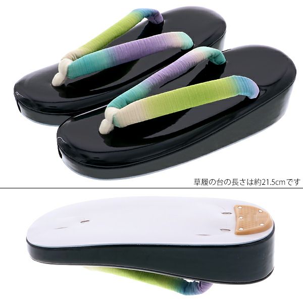 草履:台全長約21.2cm/幅約8cm/かかと高さ約4.7cm/鼻緒幅約1.7cm