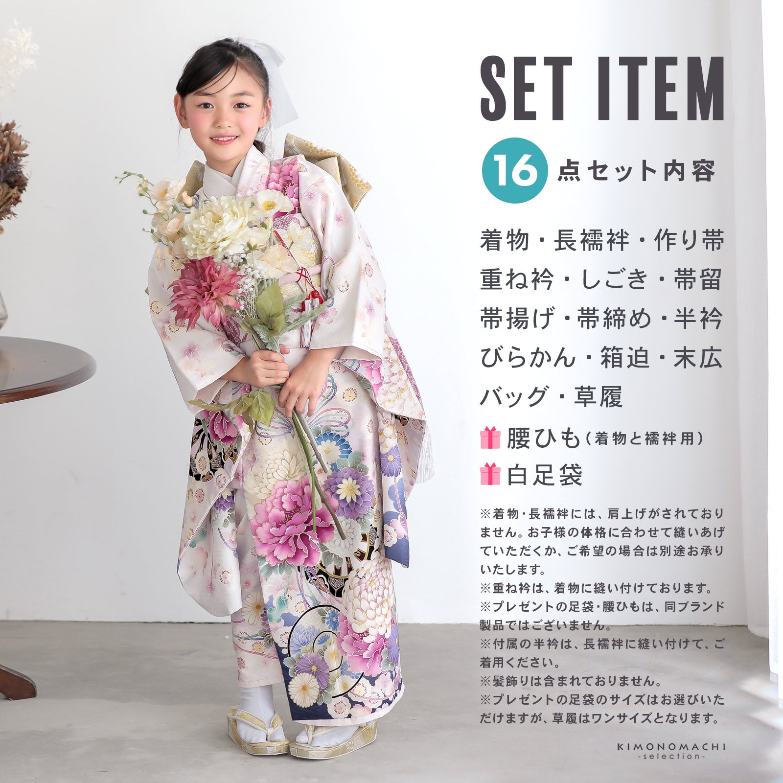 他の画像を見る 送料無料 7歳の女の子の七五三に 華やかな小物セット 七五三 着物 7歳向け 箱迫セット「アイボリー 浅縹色」日本製 7歳向け 子供着物 女の子の着物 筥迫 草履 バッグ ビラカン 丸ぐけ 末広 KIMONOMACHI オリジナル【メール便不可】 きもの町価格 ¥ 45,870 税込 カートに入れる お気に入りに登録する