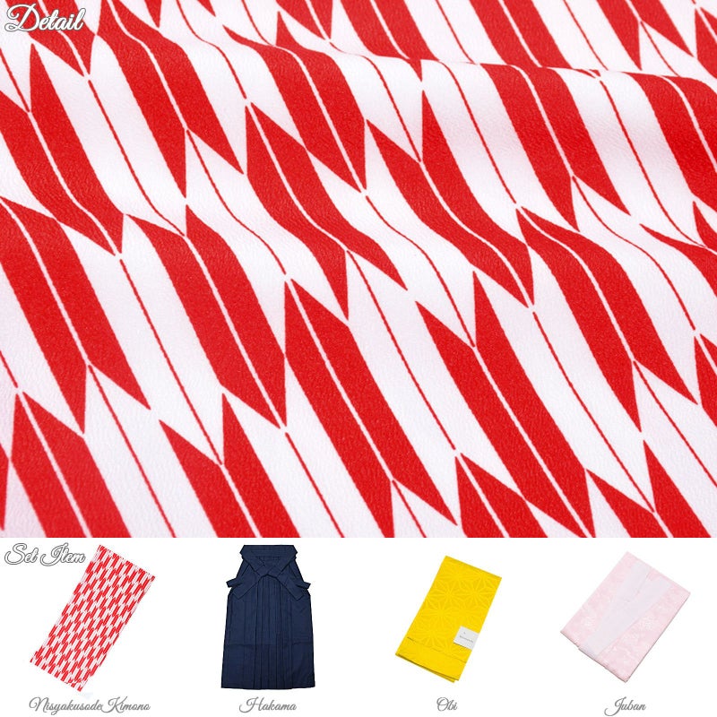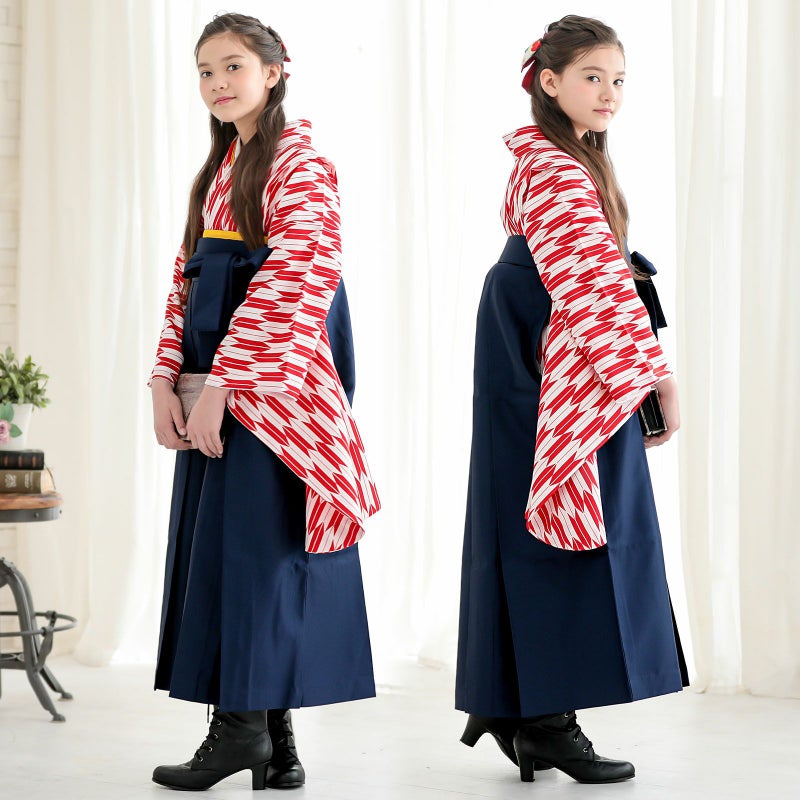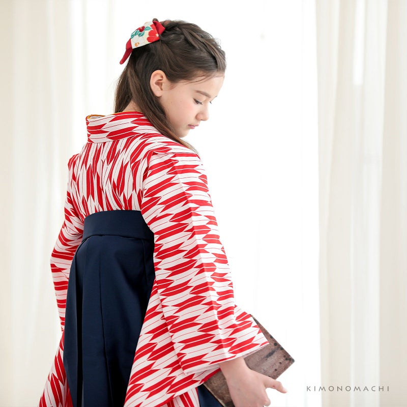 A赤×白の矢羽の着物+紺の袴