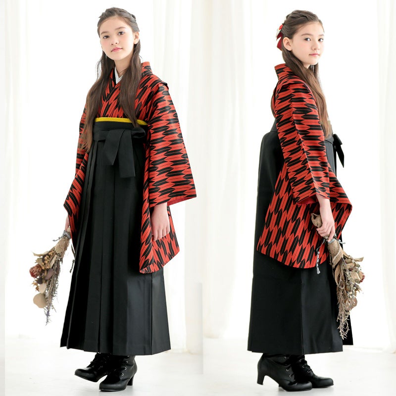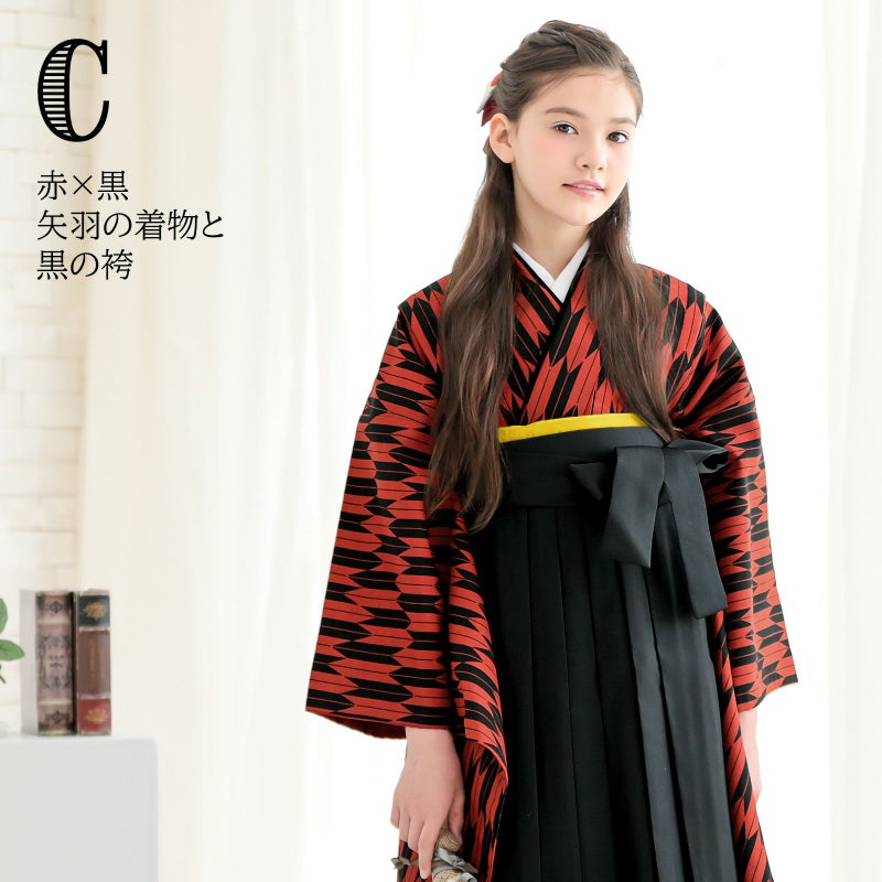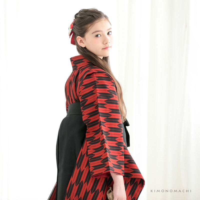 C赤×黒の矢羽の着物+黒の袴