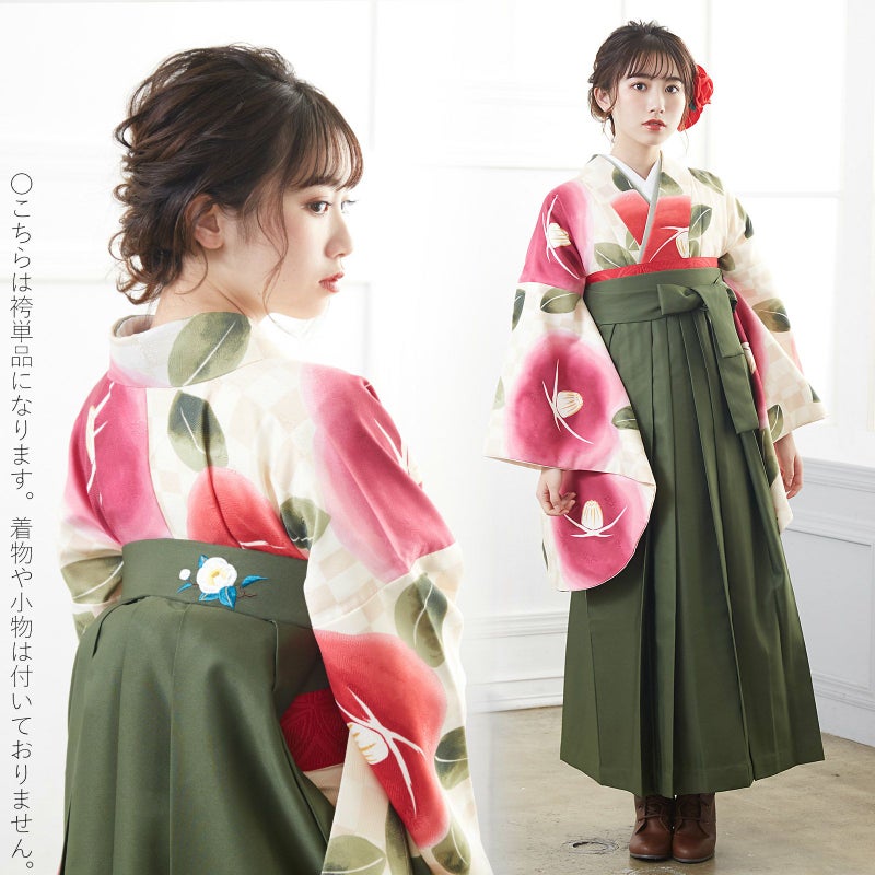 袴 単品 大きいサイズ 「抹茶 椿の刺繍」 卒業式 袴 レディース 行燈袴 SW・MW・LW・LLWサイズ ワイドサイズ ふくよかさん向け 女の子袴 女性用袴単品 【メール便不可】