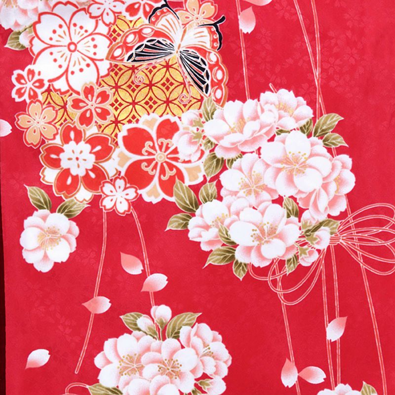 →襦袢はこちら→襦袢の身上げ・肩上げはこちら【色柄】鮮やかな赤地に可憐な花くす玉を描き、優雅な蝶をそえました。上品な古典柄が美しい、可憐で華やかな印象のお着物です。