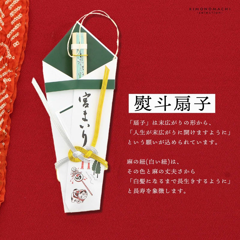 「末広がりに幸せになりますように」という願いが、麻紐は白髪に見立てられ「白髪になるまで長生きますように」という願いが込められています。こちらも初着の紐に結び付けてお使いください。