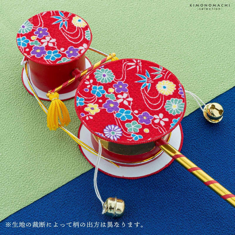 でんでん太鼓の丸い形から「角のない穏やかで表裏の無い素直な子に育ちますように」という思いが込められています。また、太鼓を鳴らす音が「赤ちゃんを悪霊から守ってくれる」と考えられており、魔除けとして用いられます。