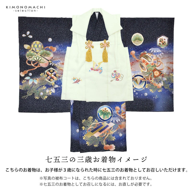 また、お子様が3歳になられた時に七五三のお着物としてもお召しいただけます。お直しが必要になりますので、別途お申込みください。