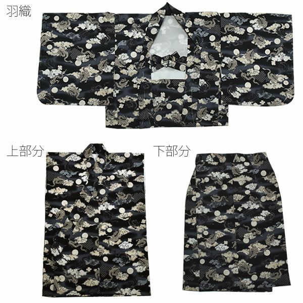 【Prices down2】ベビー着物セット「黒グレー 霞、雲に龍」男の子 こども お正月、節句 ベビー用着物 赤ちゃん 子供 男児【メール便不可】ss2506kkd40