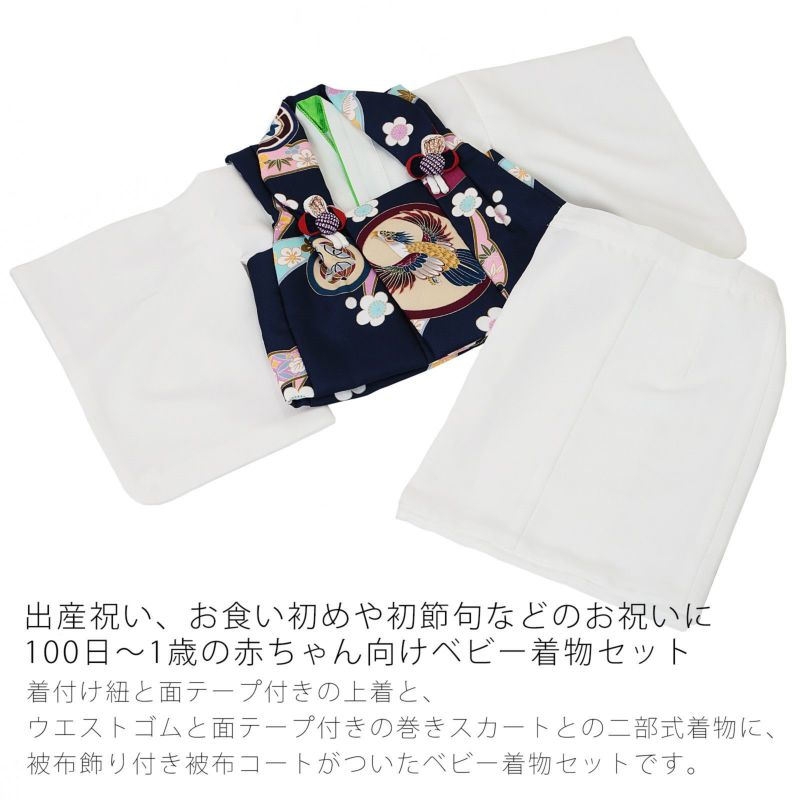 赤ちゃん用の着物セットです。二部式着物と被布で、簡単に楽に着られます。0~2歳くらいのお子様に。お正月や節句などの際に良いですね。ポリエステル素材でご家庭でお洗濯できるので、気軽に着ていただけます。