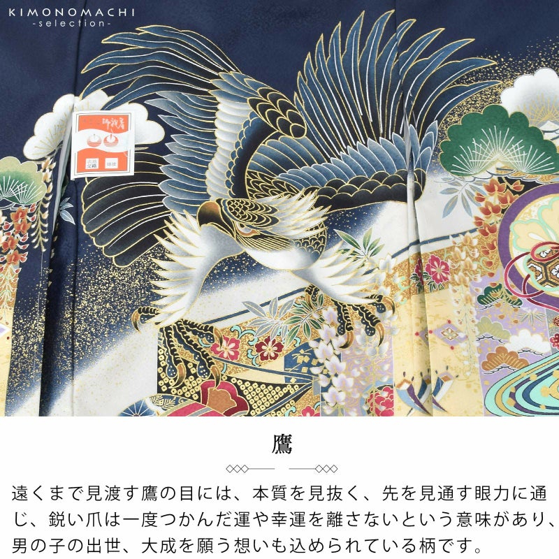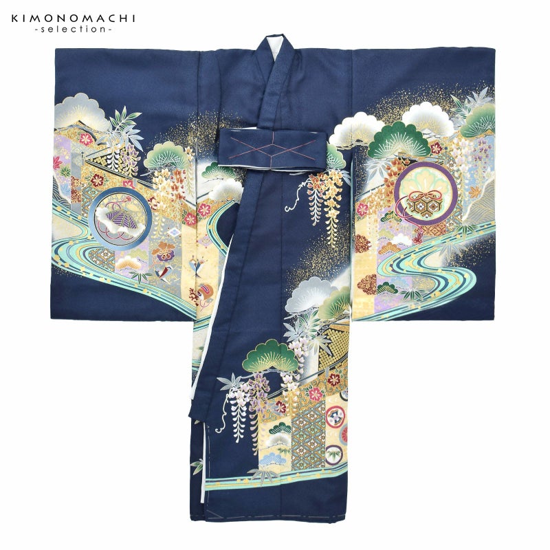 男の子らしく勇ましい、カッコイイ雰囲気。美しい発色の生地に美しい模様。長襦袢の中に水色の振りが入っており、お洒落な雰囲気をプラスしてくれます。