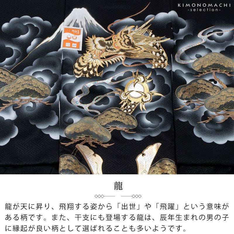 男の子らしく勇ましい、カッコイイ雰囲気。鷹の部分は手描き友禅で描き染められており、大変豪華で美しい意匠です。