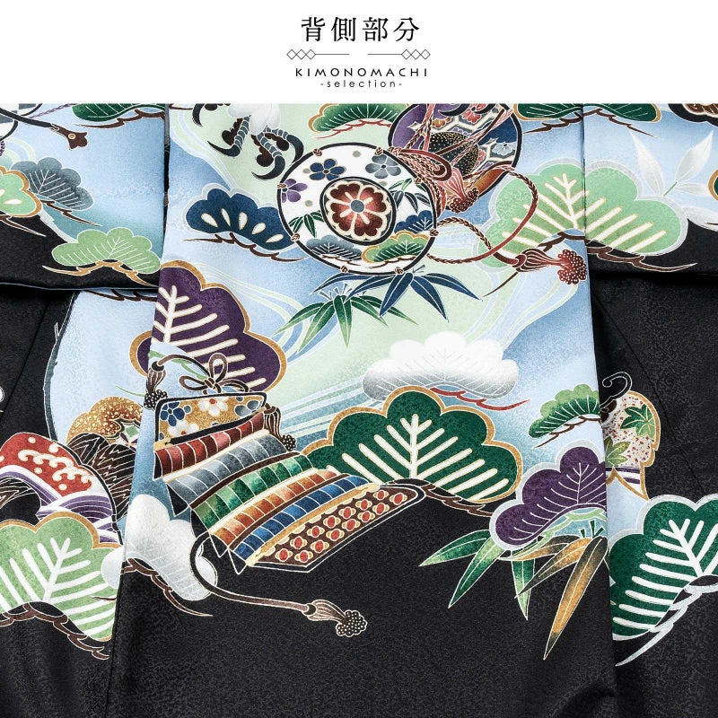 男の子らしく勇ましい、カッコイイ雰囲気。美しい発色の生地に美しい模様。長襦袢の中に水色の振りが入っており、お洒落な雰囲気をプラスしてくれます。