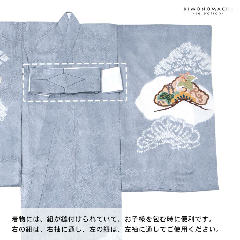 男の子らしく勇ましい、カッコイイ雰囲気。美しい発色の生地に美しい模様。長襦袢の中に水色の振りが入っており、お洒落な雰囲気をプラスしてくれます。