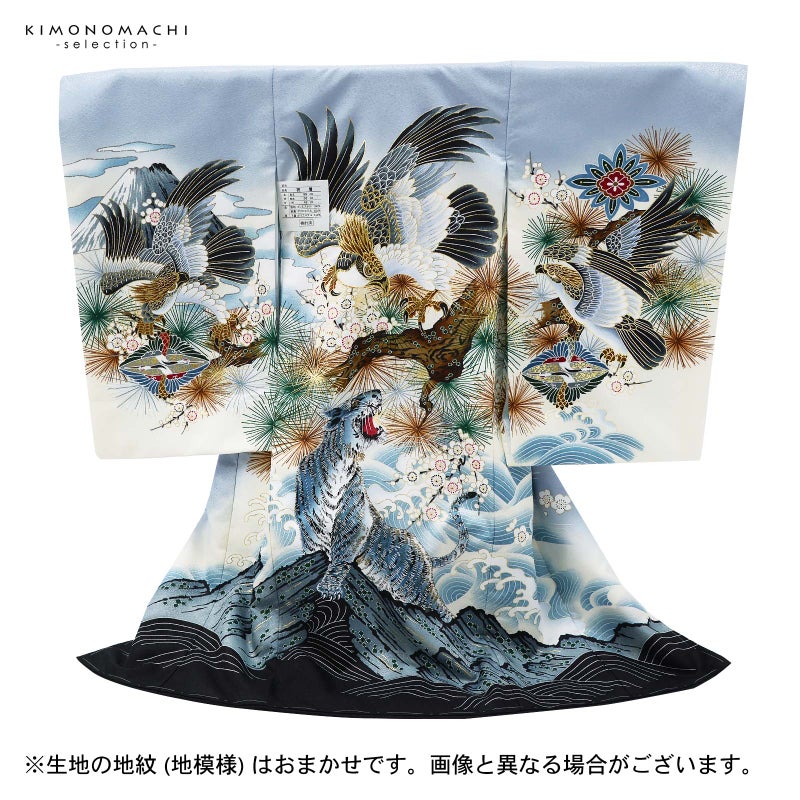 4. 男の子のお宮参り産着 祝い着「空色 鷹に虎」日本製 熨斗目 のしめ 一つ身 一ツ身 初着 お初着 御祝着 着物 七五三 お宮詣り 祈願 お祈り 子供 キッズ 赤ちゃん ベビー 男児【メール便不可】