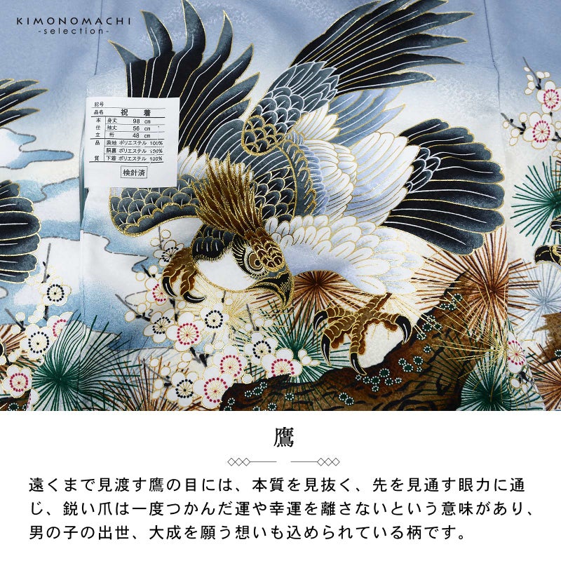 男の子のお宮参り産着 祝い着「空色 鷹に虎」日本製 熨斗目 のしめ 一つ身 一ツ身 初着 お初着 御祝着 着物 七五三 お宮詣り 祈願 お祈り 子供 キッズ 赤ちゃん ベビー 男児【メール便不可】