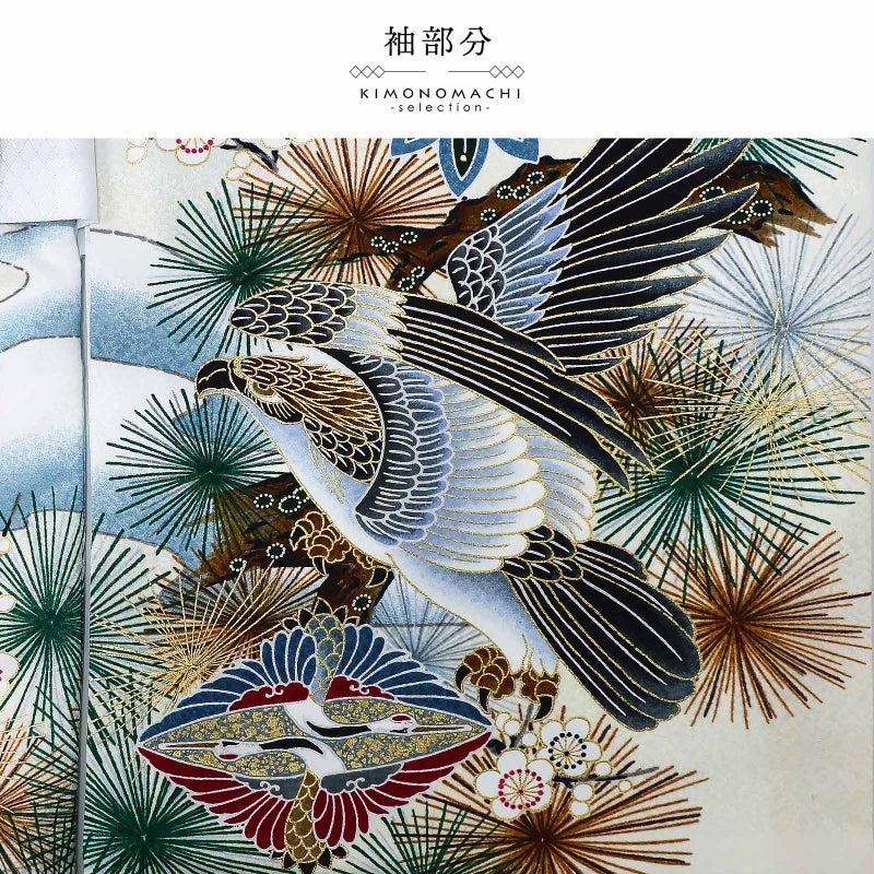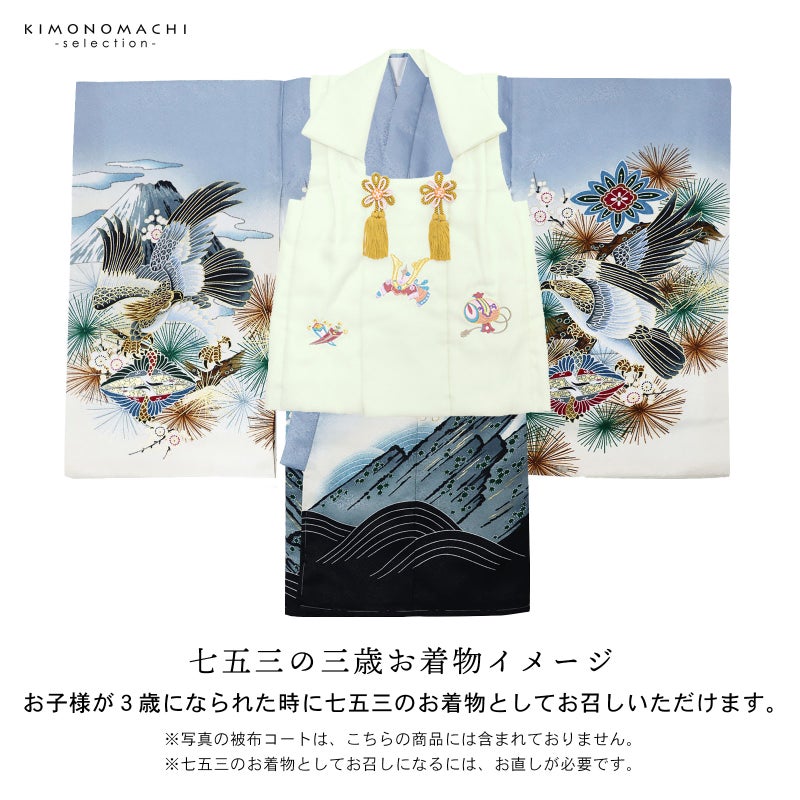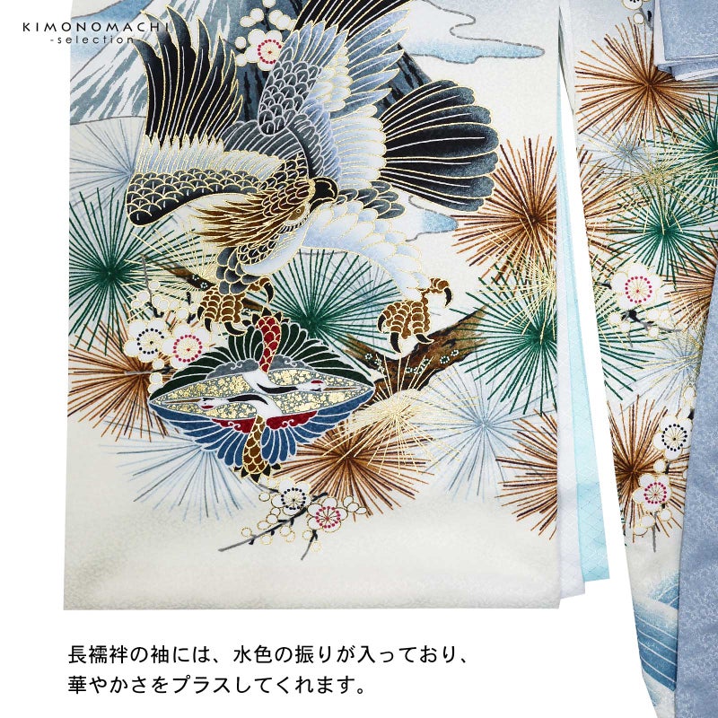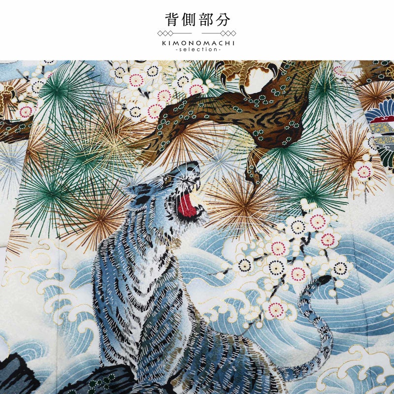 3. 男の子のお宮参り産着 祝い着「空色 鷹に虎」日本製 熨斗目 のしめ 一つ身 一ツ身 初着 お初着 御祝着 着物 七五三 お宮詣り 祈願 お祈り 子供 キッズ 赤ちゃん ベビー 男児【メール便不可】