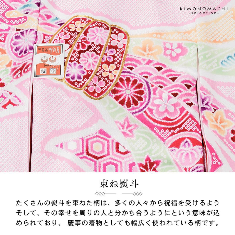 3. 女の子のお宮参り産着 祝い着「絞り調 薄桜 束ね熨斗」日本製 一つ身 一ツ身 初着 お初着 御祝着 着物 熨斗目 のしめ 七五三 お宮詣り 祈願 お祈り 子供 キッズ 赤ちゃん ベビー 女児【メール便不可】