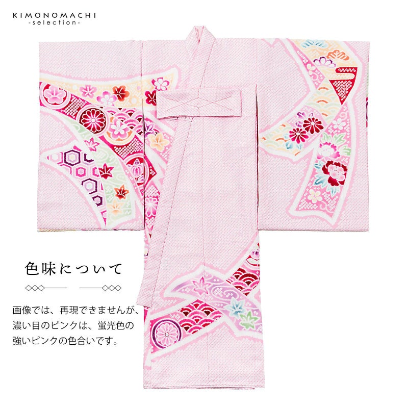 お宮参りの産着、初着 お祝い着 七五三の3歳の着物にも 女の子のお宮参り産着 祝い着「絞り調 薄桜 束ね熨斗」日本製 一つ身 一ツ身 初着 お初着 御祝着 着物 熨斗目 のしめ 七五三 お宮詣り 祈願 お祈り 子供 キッズ 赤ちゃん ベビー 女児【メール便不可】