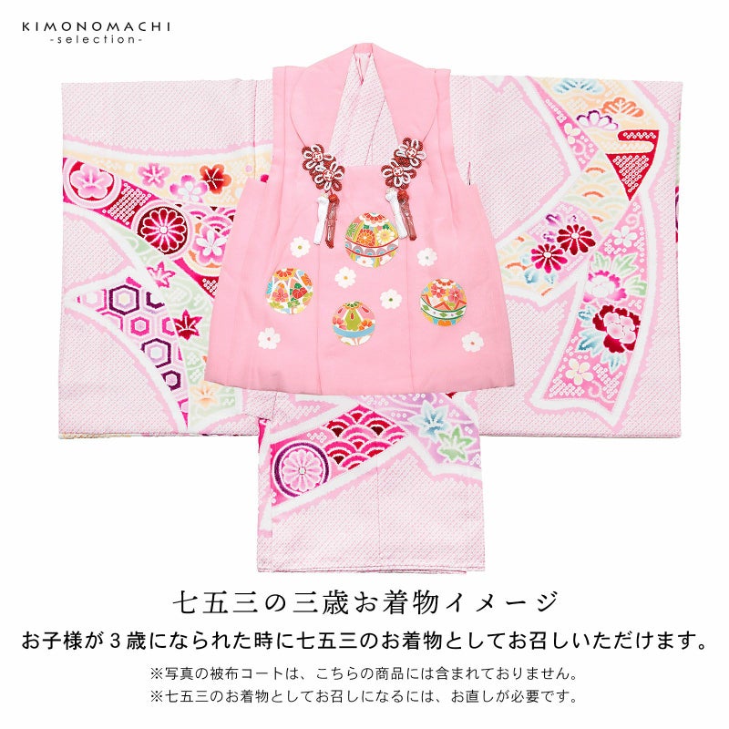 また、お子様が3歳になられた時に七五三のお着物としてもお召しいただけます。お直しが必要になりますので、別途お申込みください。