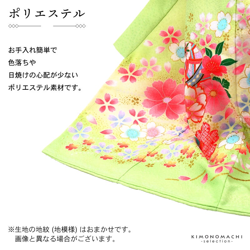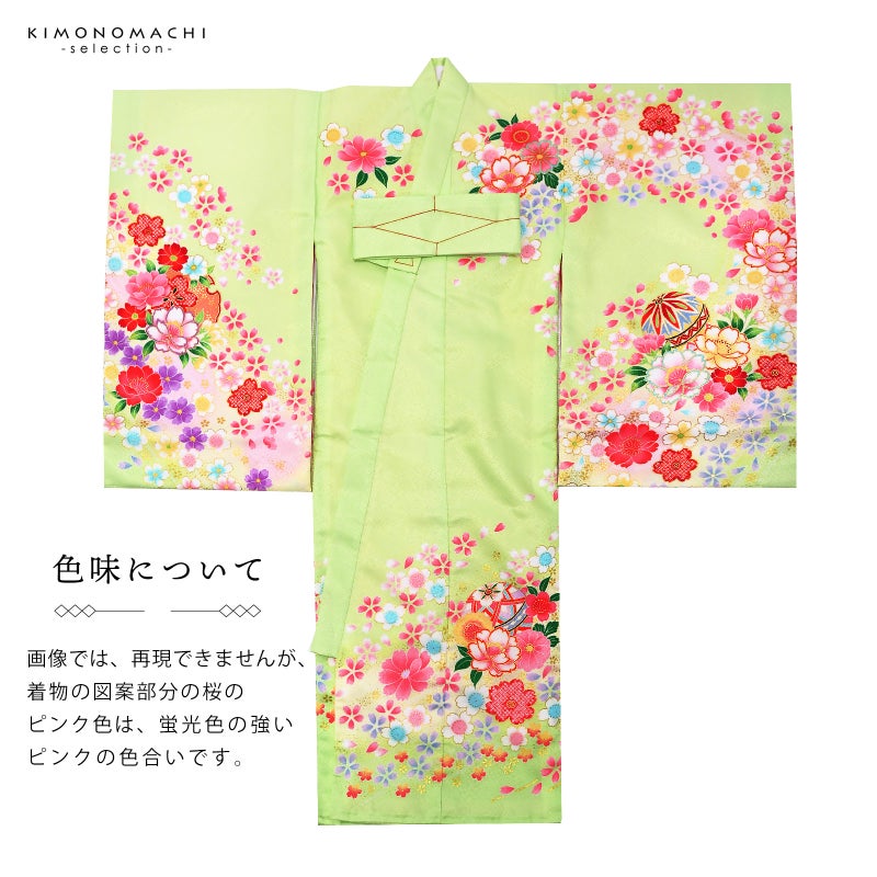 お宮参りの産着、初着 お祝い着 七五三の3歳の着物にも 女の子のお宮参り産着 祝い着「若葉色 鞠と八重桜」日本製 一つ身 一ツ身 初着 お初着 御祝着 着物 熨斗目 のしめ 七五三 お宮詣り 祈願 お祈り 子供 キッズ 赤ちゃん ベビー 女児【メール便不可】
