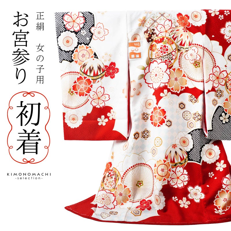 女の子のお宮参りに。高級本仕立てのお祝い着・産着(うぶぎ)/初着(はつぎ)です。お子様、お孫様の誕生のお祝いに。化粧箱に入れてお届けいたします。お熨斗、ラッピングも承ります。お気軽にお申し付けください。