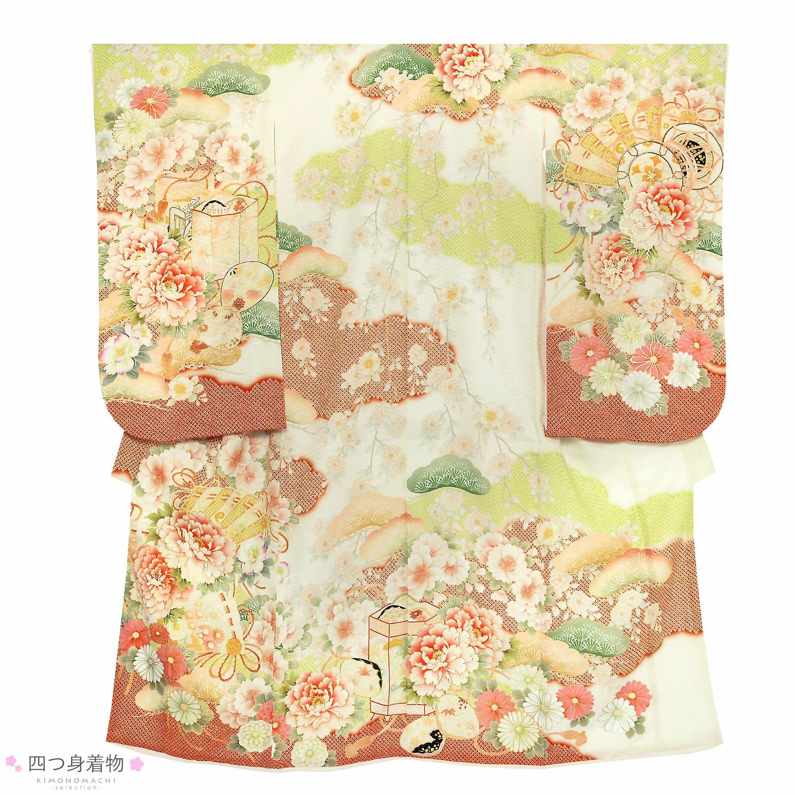 他の画像を見る 送料無料 七五三 七歳の女の子に 華やかな四つ身着物 ひな祭り、桃の節句 お正月にも お子様着物に 七五三 7歳 四つ身着物フルセット ブランド 華徒然「アイボリー×黄緑×赤 四季花に王朝文様」女の子 7才 女児用 子供着物 七才のお祝い着向け【メール便不可】 きもの町価格 ¥ 262,020 税込 カートに入れる お気に入りに登録する