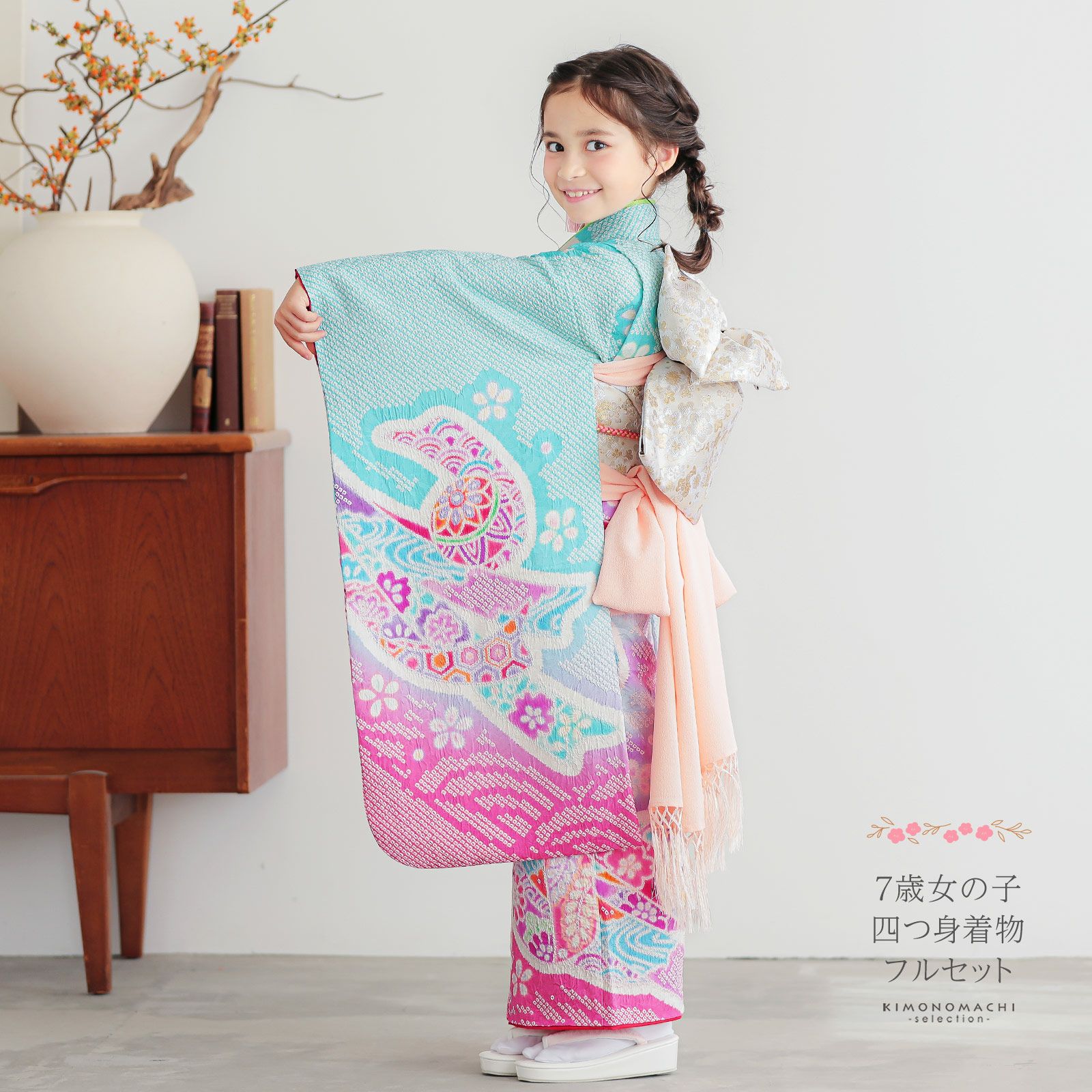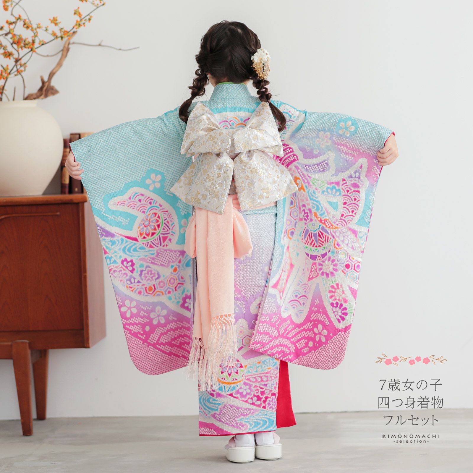 他の画像を見る 送料無料 七五三 七歳の女の子に 華やかな四つ身着物 ひな祭り、桃の節句 お正月にも お子様着物に 七五三 7歳 四つ身着物フルセット ブランド Shikibu Roman 式部浪漫「ミントブルー 束ね熨斗に源氏香、四季花」女の子 7才 女児用 子供着物 七才のお祝い着向け【メール便不可】 きもの町価格 ¥ 180,279 税込 カートに入れる お気に入りに登録する