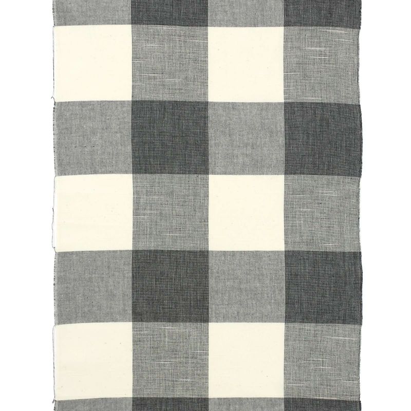 【色柄】オフホワイトに縦筋の入った濃いグレー、横段に薄い杢グレーを重ねた約10cm角ほどのブロックチェック。無彩色がスッキリとして格好いい格子です。