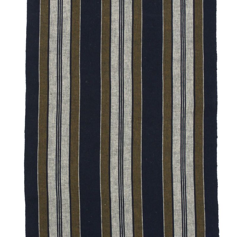 【色柄】紺地に紺の三本縞、白、媚茶の大きな両子持ち縞。トラッド感のある落ち着いた縞です。