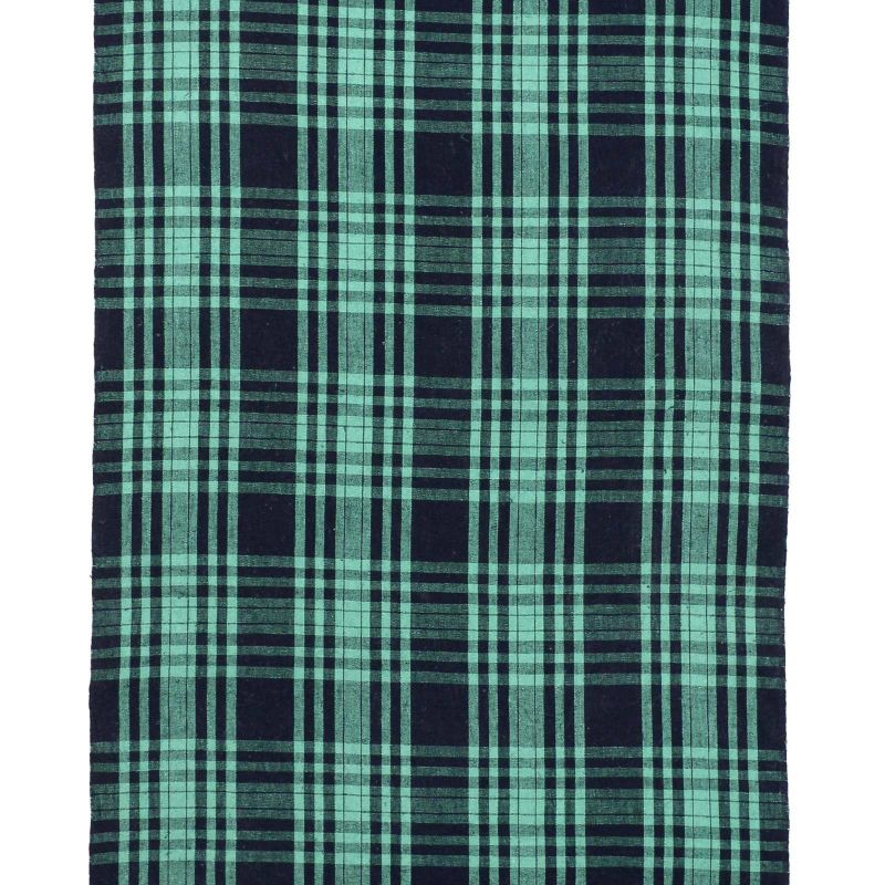 【色柄】濃紺の地に浅葱色の太さの違う縞を重ねた格子。爽やかな色彩がモダンな印象です。