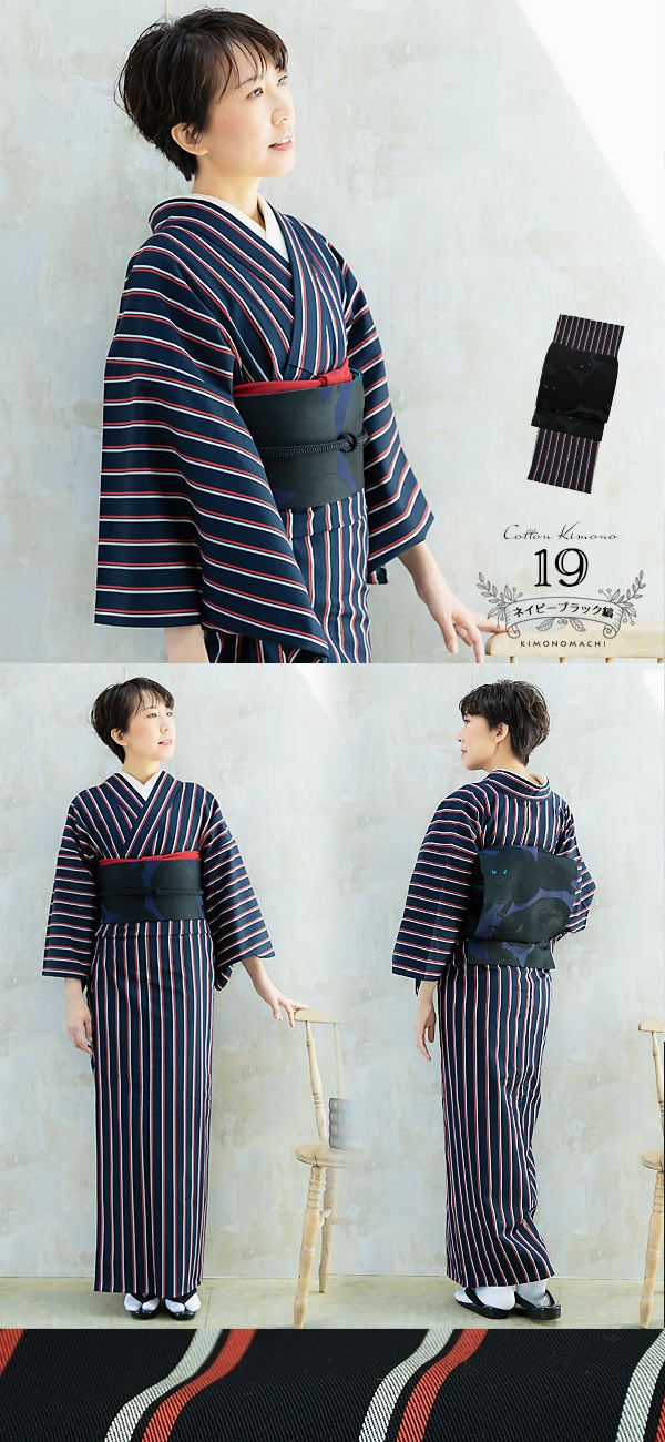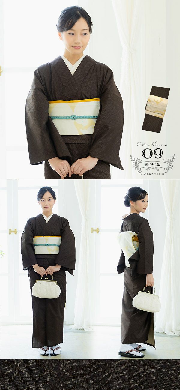木綿はおうちで洗える気楽さ、着慣れた優しい風合いに加え、帯のデザイン次第で何通りにもコーディネートできるうれしいお洒落素材。