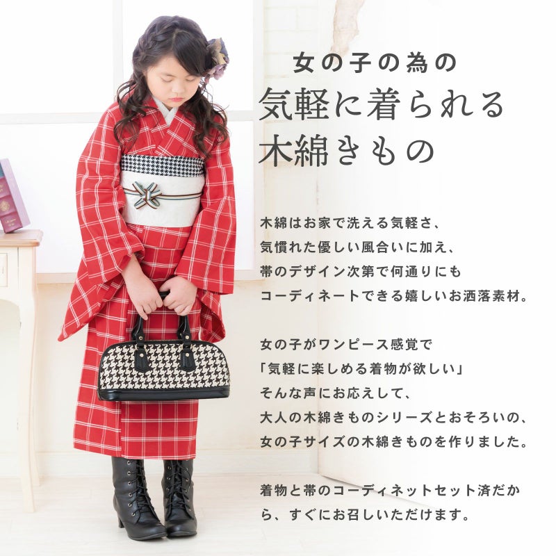 女の子がワンピース感覚で、「気軽に楽しめる着物が欲しい」そんな声にお応えして、大人の木綿着物シリーズとおそろいの、女の子サイズの木綿きものを作りました。