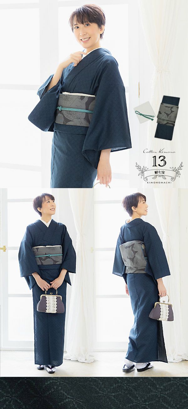 木綿着物は多少汚してもお家で洗えるから、カフェやお買い物なんかのちょっとしたお出かけにぴったり。