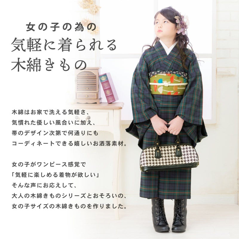 親子でお揃い着物で、お散歩や、ちょっとお出かけするのも素敵ですね。木綿着物なので、普段にいっぱい着てほしい着物です。