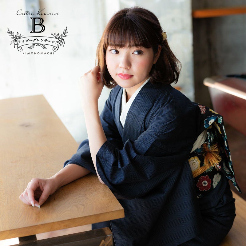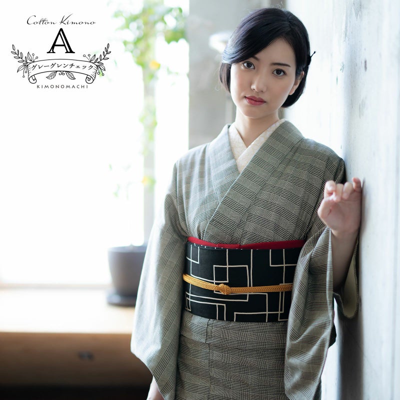 毎日のように着物を着る上級者さんにも、初めて着物を着るという初心者さんにも人気の木綿着物を、メンズライクなグレンチェック柄で作りました。