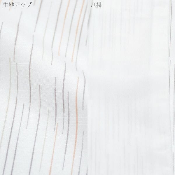 3. 紬風袷着物、京袋帯セット「白色 絣縞」M、Lサイズ 小紋 お仕立て上がり着物 プレタ 洗える着物セット 【メール便不可】